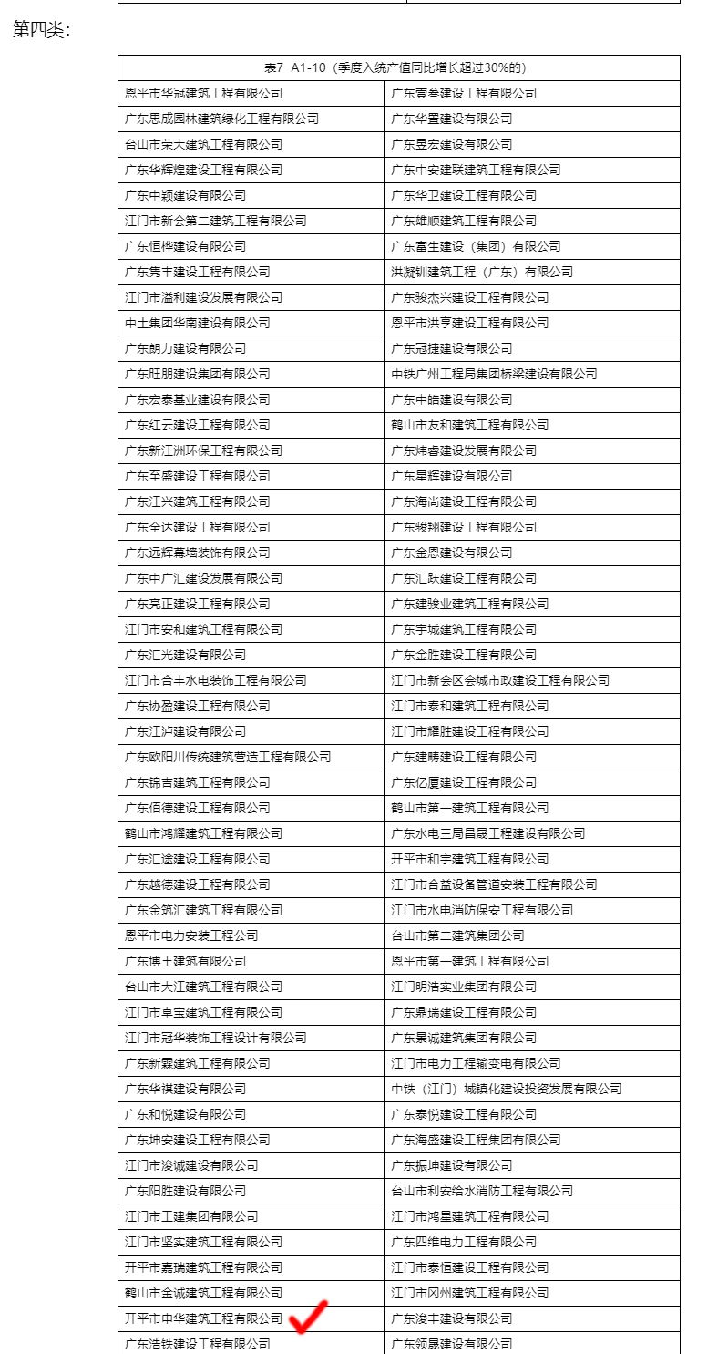 | 类别名称: | 建筑业高质量发展贡献,季度入统产值同比增长超过30%的 |