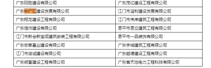 | 评价依据: | 在江门市建筑业企业信用管理 信息系统公布名单 |