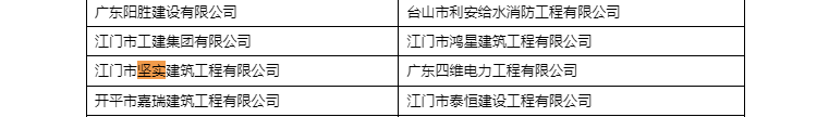 | 评价依据: | 企业自报,并在江门市建筑业企业信用管理信息系统公布名单 |