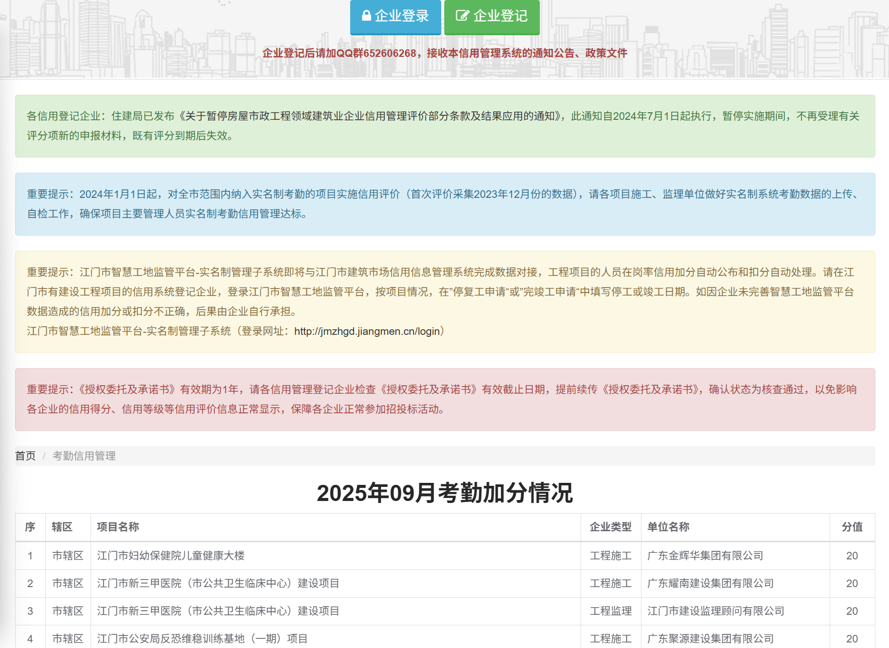 | 发文编号: | 关于2025年9月份全市在建项目主要管理人员实名制考勤信用评价情况的公告 |