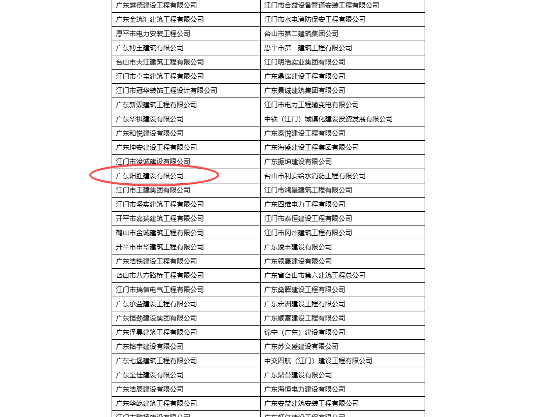 | 评价依据: | 企业自报,并在江门市建筑业企业信用管理信息系统公布名单 |