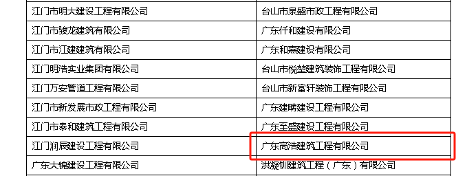 | 评价依据: | 在江门市建筑业企业信用管理 信息系统公布名单 |