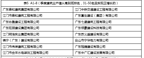 | 类别名称: | 季度建筑业产值从高到低排名,31-50名且实现正增长的 |