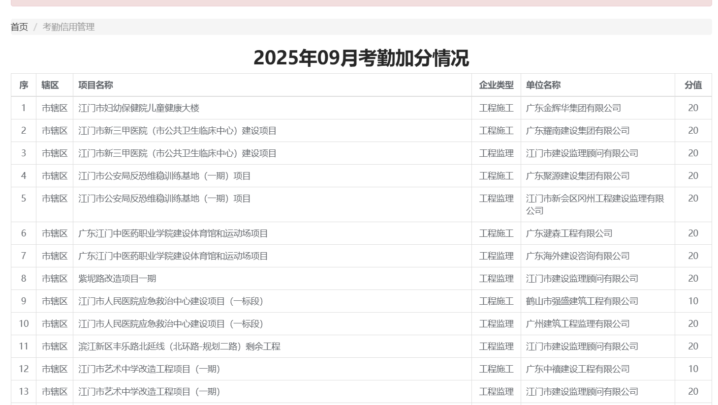 | 类别名称: | 对纳入实名制管理的房屋市政项目,总监理工程师和专业监理工程师在一个月内均达到以下在岗率,企业可申请加分(人员在岗率计算:在岗天数/当月天数)80%≤人员在岗率 |