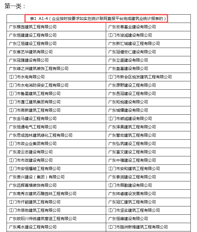 类别名称: 企业按时按要求如实在统计联网直报平台完成建筑业统计报表的