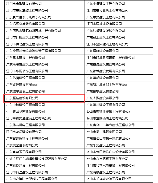 评价依据: 在江门市建筑业企业信用管理 信息系统公布名单