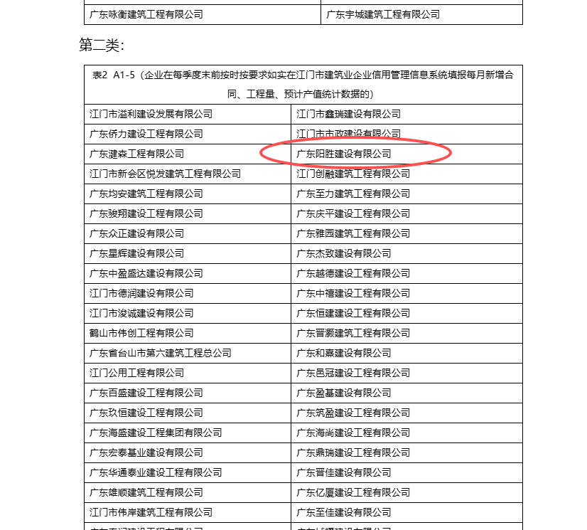 | 评价依据: | 根据填报情况在江门市建筑业企业信用管理信息系统公布名单 |