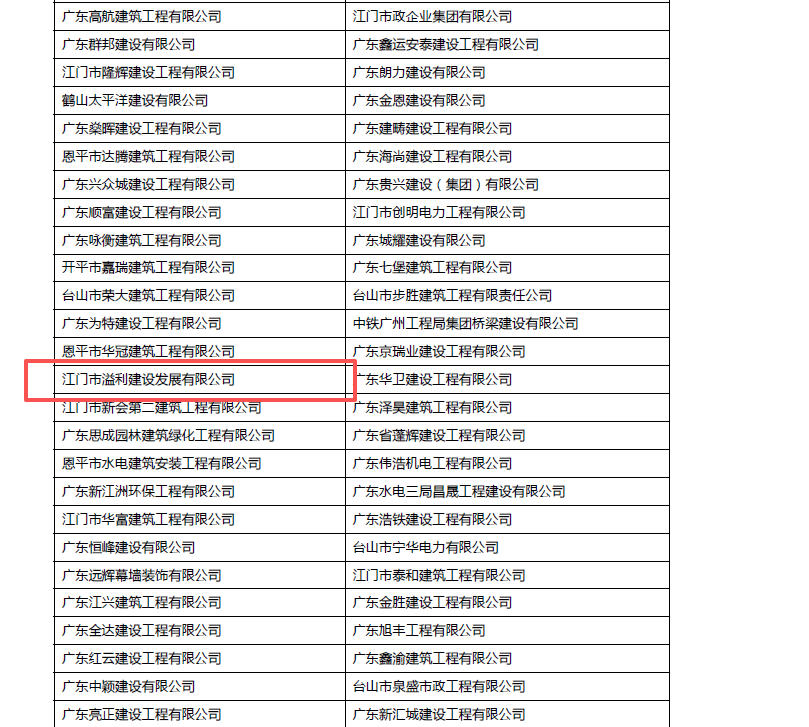 | 评价依据: | 企业自报,并在江门市建筑业企业信用管理信息系统公布名单 |