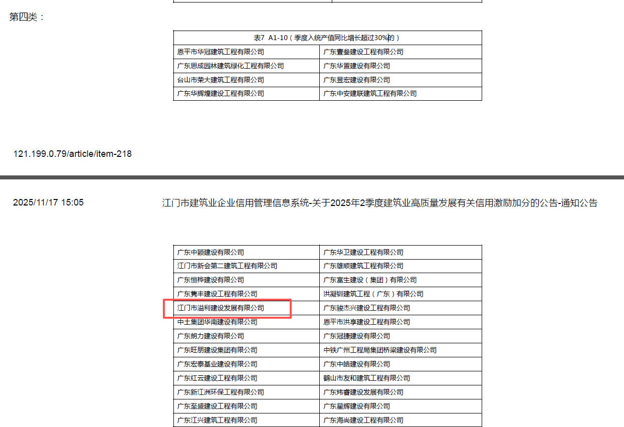 | 评价依据: | 企业自报,并在江门市建筑业企业信用管理信息系统公布名单 |