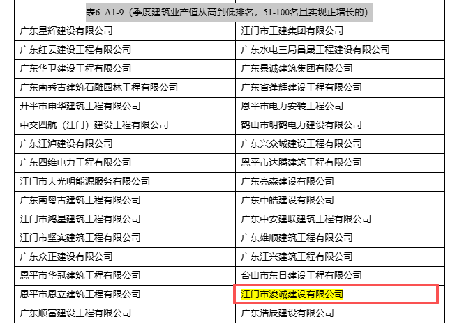 | 评价依据: | 企业自报,并在江门市建筑业企业信用管理信息系统公布名单 |