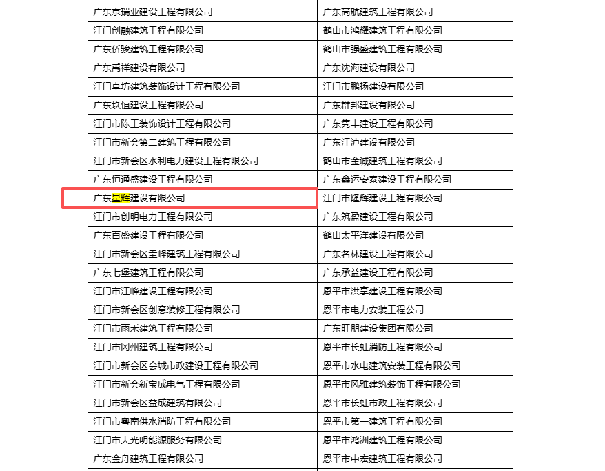 | 评价依据: | 在江门市建筑业企业信用管理 信息系统公布名单 |