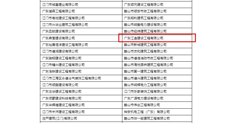 | 评价依据: | 在江门市建筑业企业信用管理 信息系统公布名单 |
