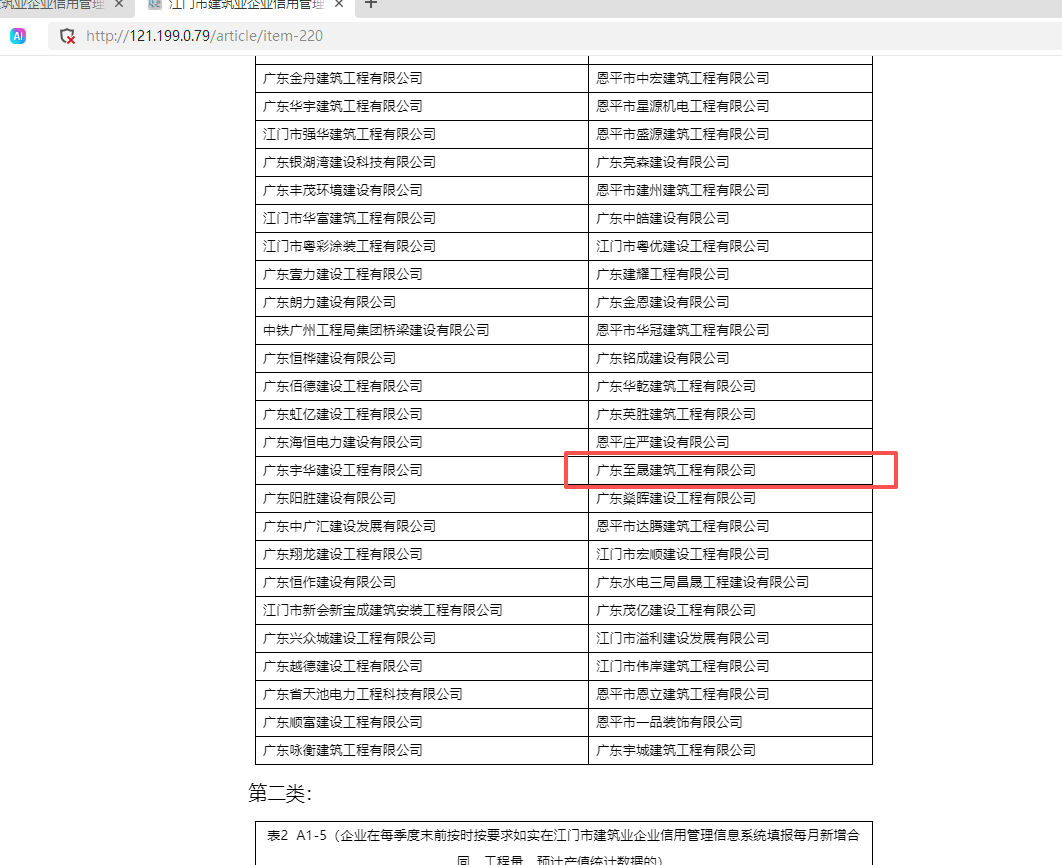 | 评价依据: | 在江门市建筑业企业信用管理 信息系统公布名单 |