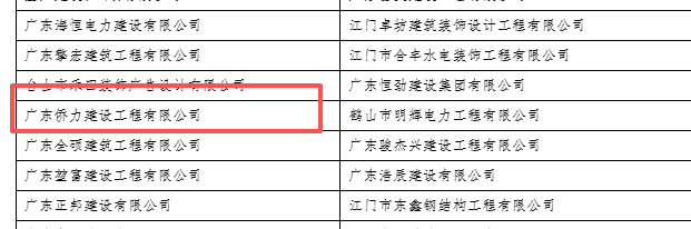 | 评价依据: | 企业自报,并在江门市建筑业企业信用管理信息系统公布名单 |