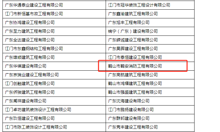 | 评价依据: | 在江门市建筑业企业信用管理 信息系统公布名单 |