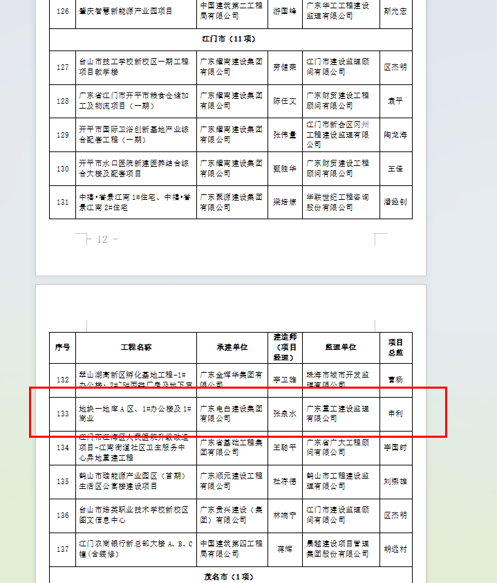 | 评价依据: | 获奖通报文件或获奖荣誉证书(江门市行政区域范围内承接的房屋市政工程项目。同一工程项目同一类别的获奖得分不可以累加,按最高等级加分计算);加分核查过程中有疑问的,还应提供工程施工合同、施工许可证、分包合同、联合体协议书以及行政主管部门要求的其他佐证材料。 |