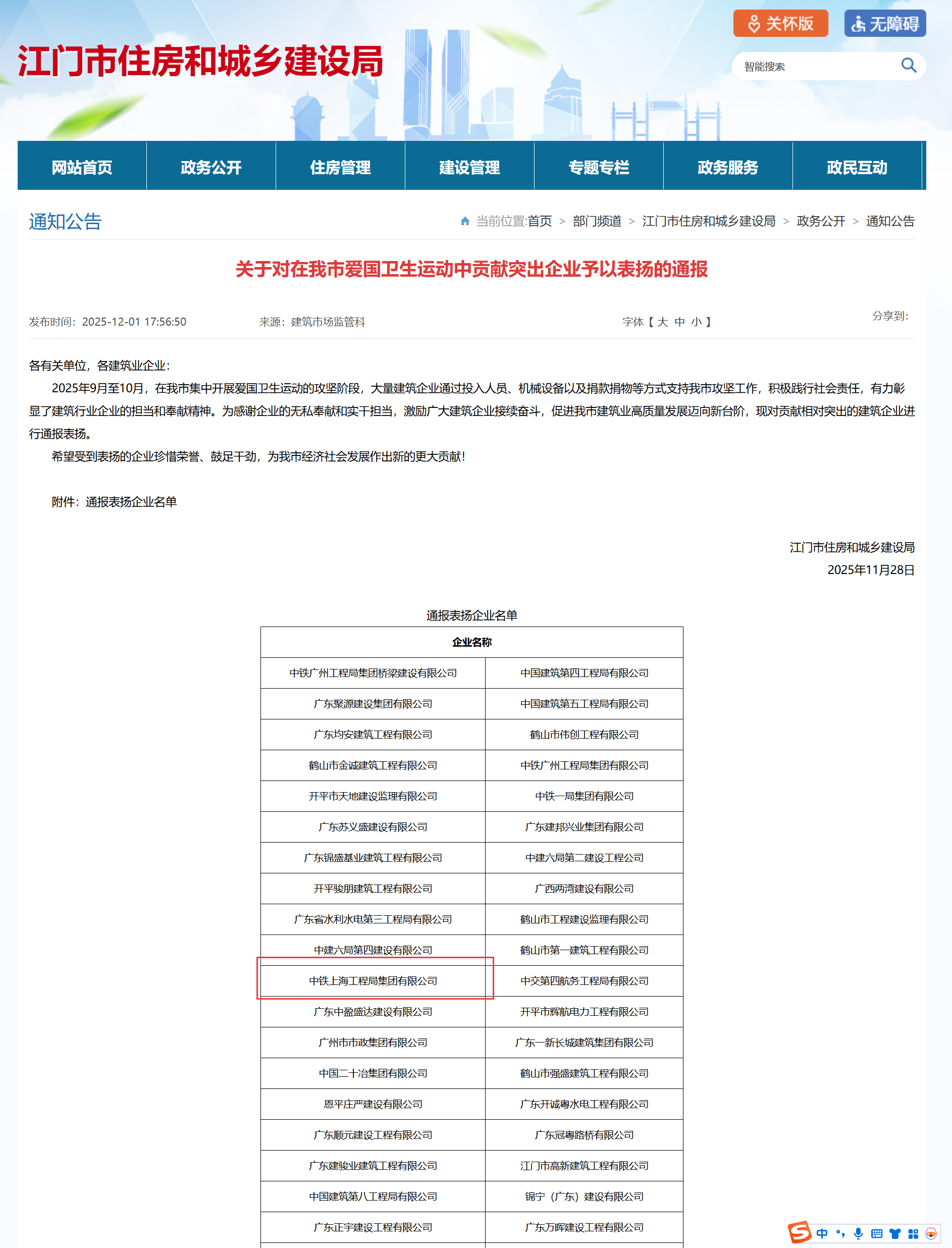 | 类别名称: | 市级住房城乡建设主管部门:与房屋市政工程建设有关市场行为、质量安全以及与市建筑业高质量发展相关方面的通报表扬 |
