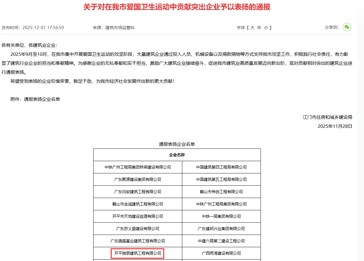| 发文单位: | 开平骏朋建筑工程有限公司 |
