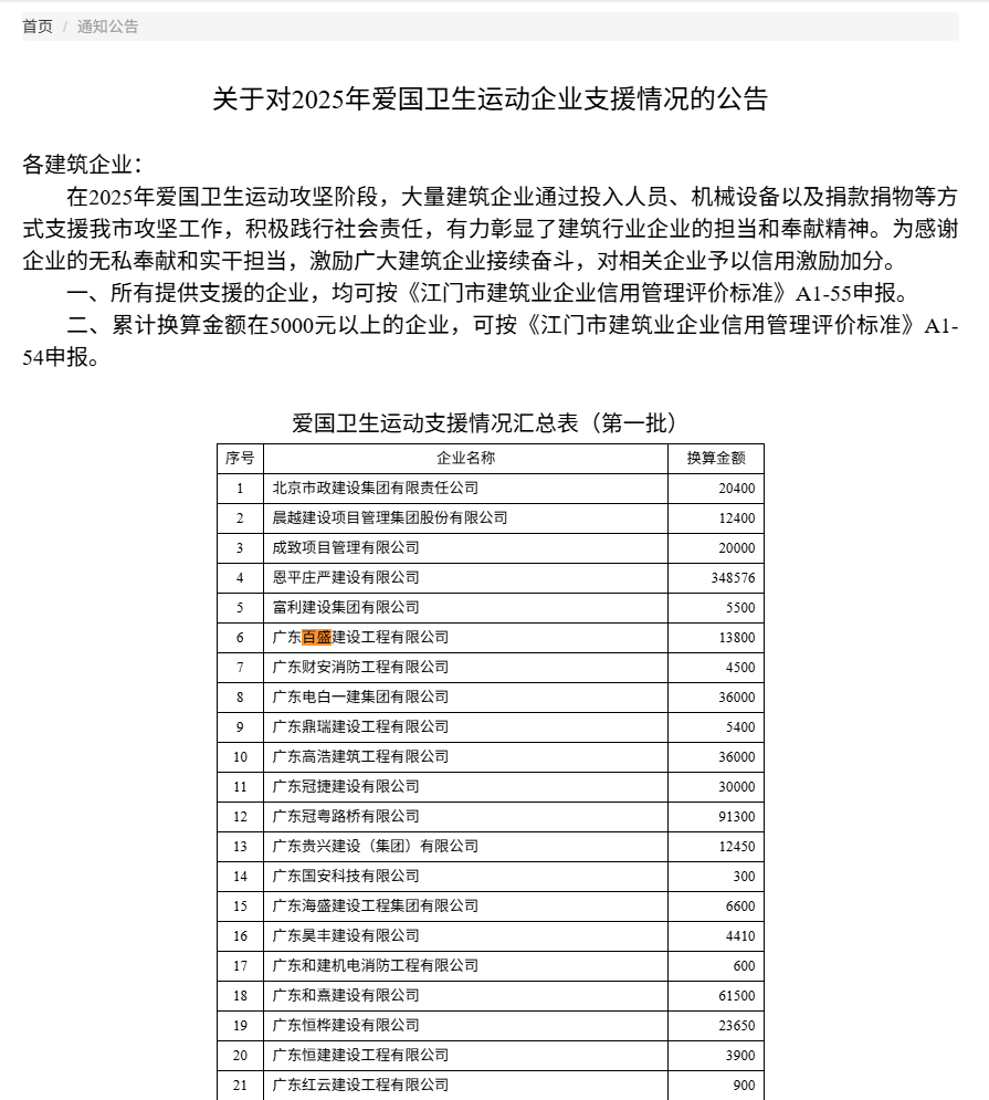 | 发文单位: | 广东百盛建设工程有限公司 |
