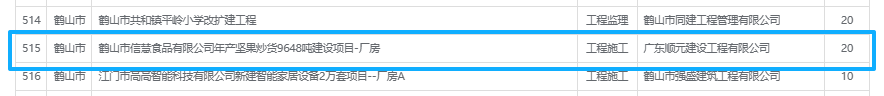 | 工程项目名称: | 鹤山市信慧食品有限公司年产坚果炒货9648吨建设项目-厂房 |