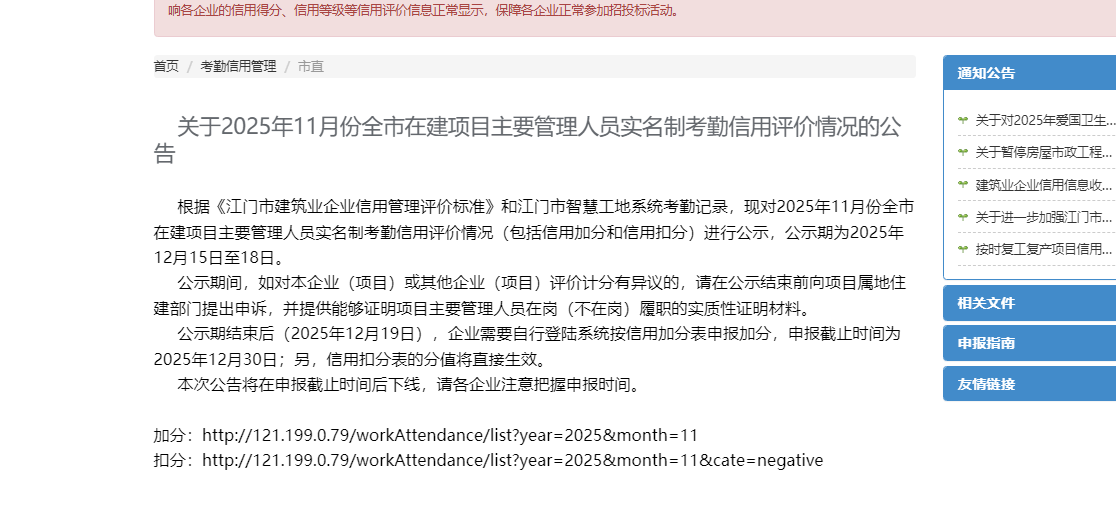 | 类别名称: | 对纳入实名制管理的房屋市政项目,项目负责人和专职安全员在一个月内均达到以下在岗率,企业可申请加分(人员在岗率计算:在岗天数/当月天数)90%≤人员在岗率<100% |