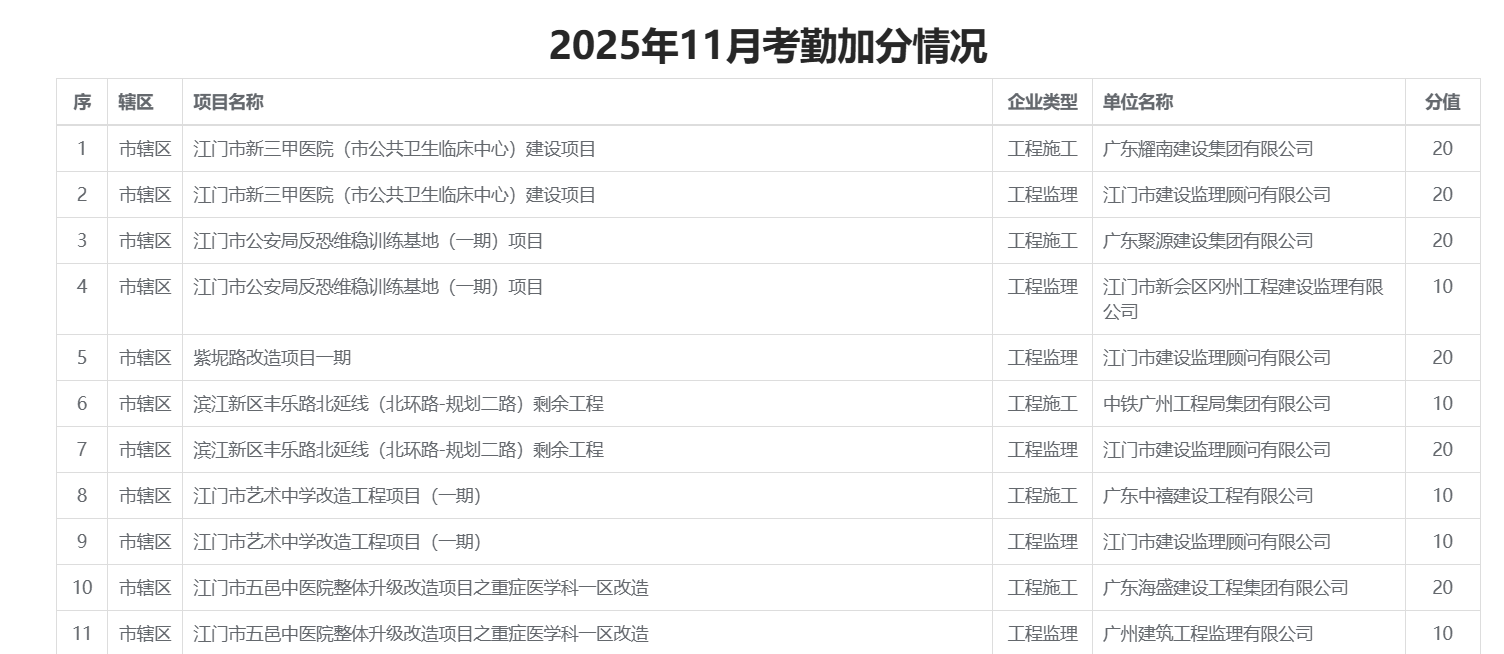 | 类别名称: | 对纳入实名制管理的房屋市政项目,总监理工程师和专业监理工程师在一个月内均达到以下在岗率,企业可申请加分(人员在岗率计算:在岗天数/当月天数)70%≤人员在岗率<80% |
