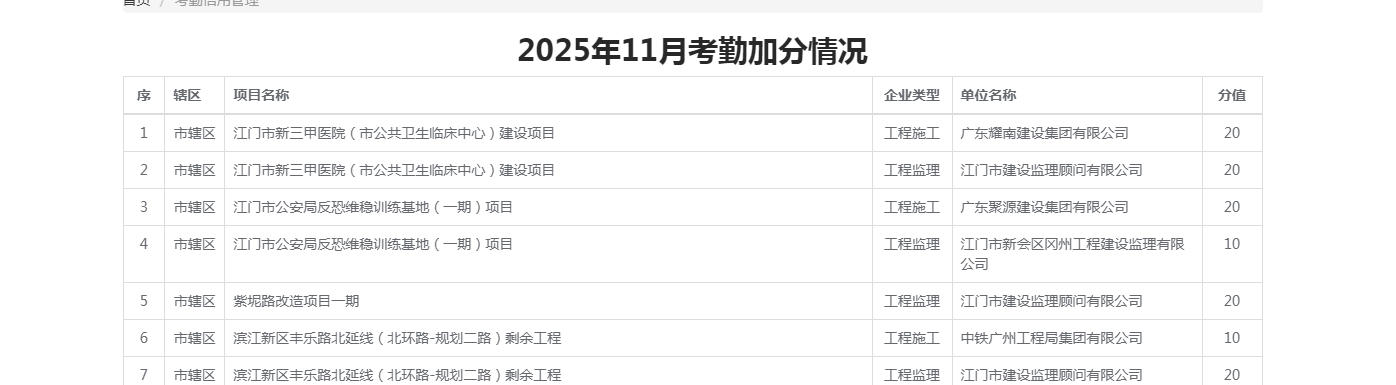 | 类别名称: | 对纳入实名制管理的房屋市政项目,总监理工程师和专业监理工程师在一个月内均达到以下在岗率,企业可申请加分(人员在岗率计算:在岗天数/当月天数)80%≤人员在岗率 |