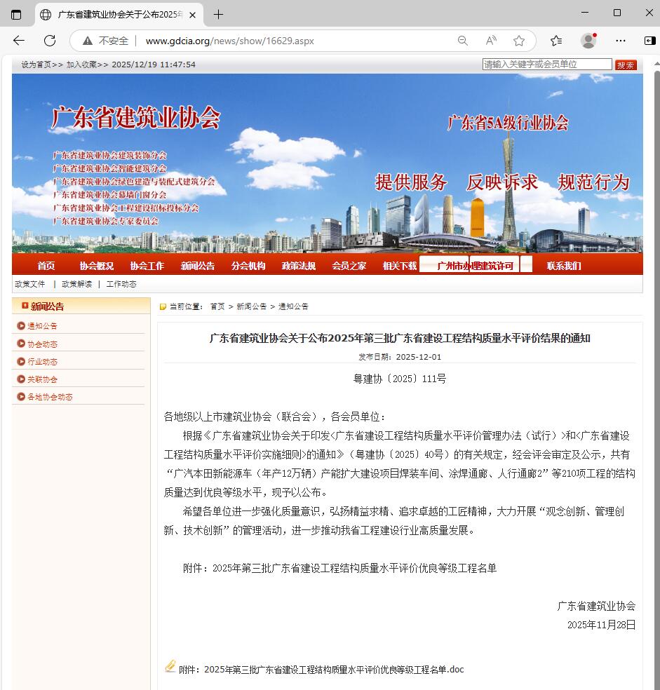 | 类别名称: | 广东建筑业协会:优质结构奖 |