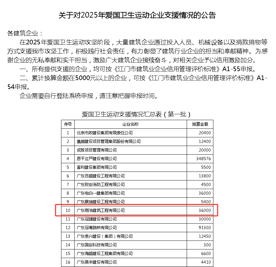 | 发文编号: | 关于对2025年爱国卫生运动企业支援情况的公告 |