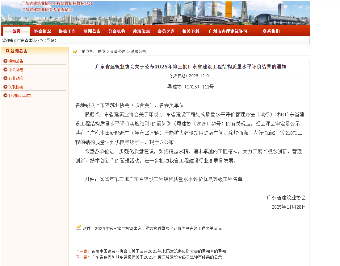 | 类别名称: | 广东建筑业协会:优质结构奖 |