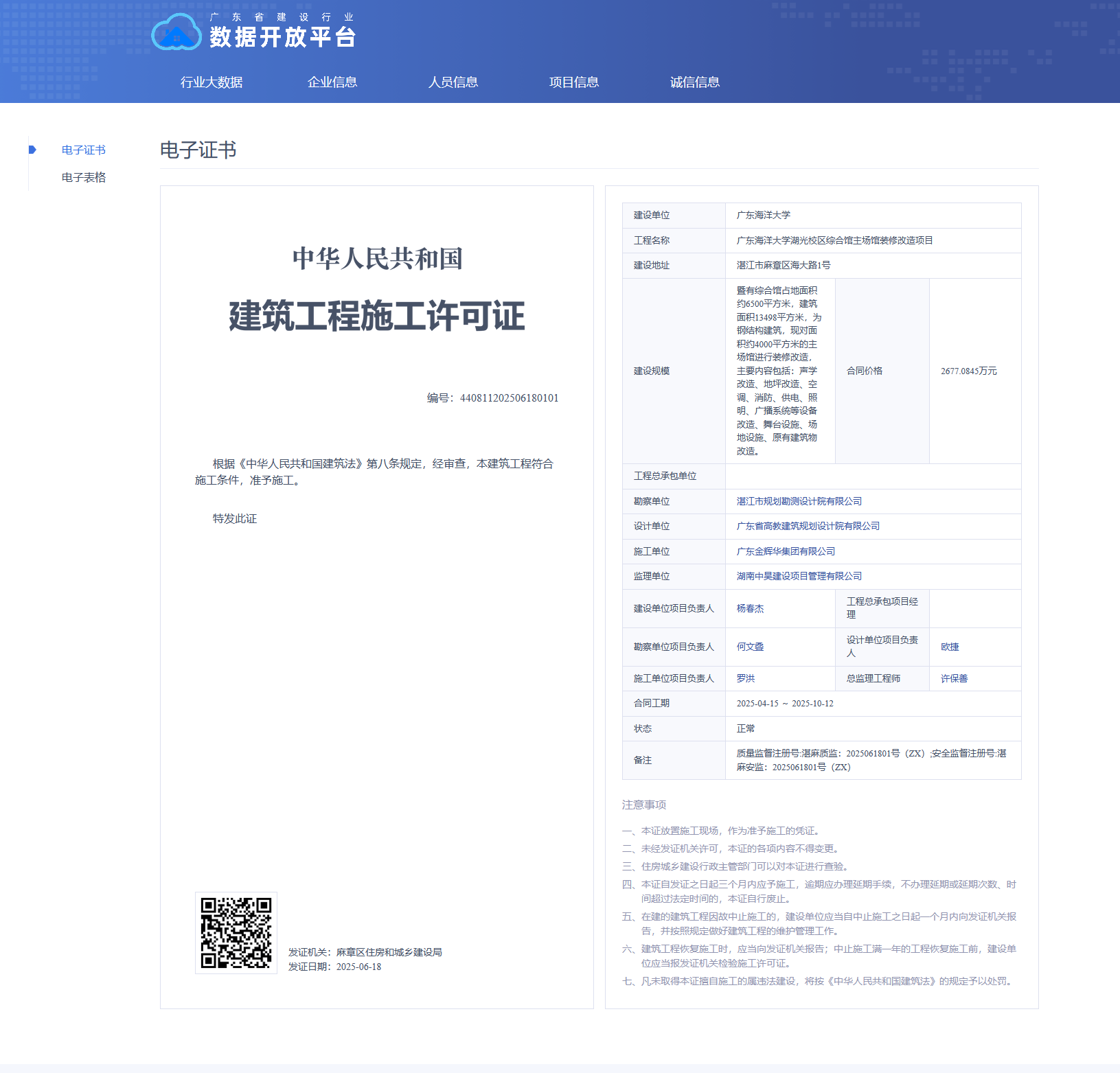 | 工程项目名称: | 广东海洋大学湖光校区综合馆主场馆装修改造项目 |