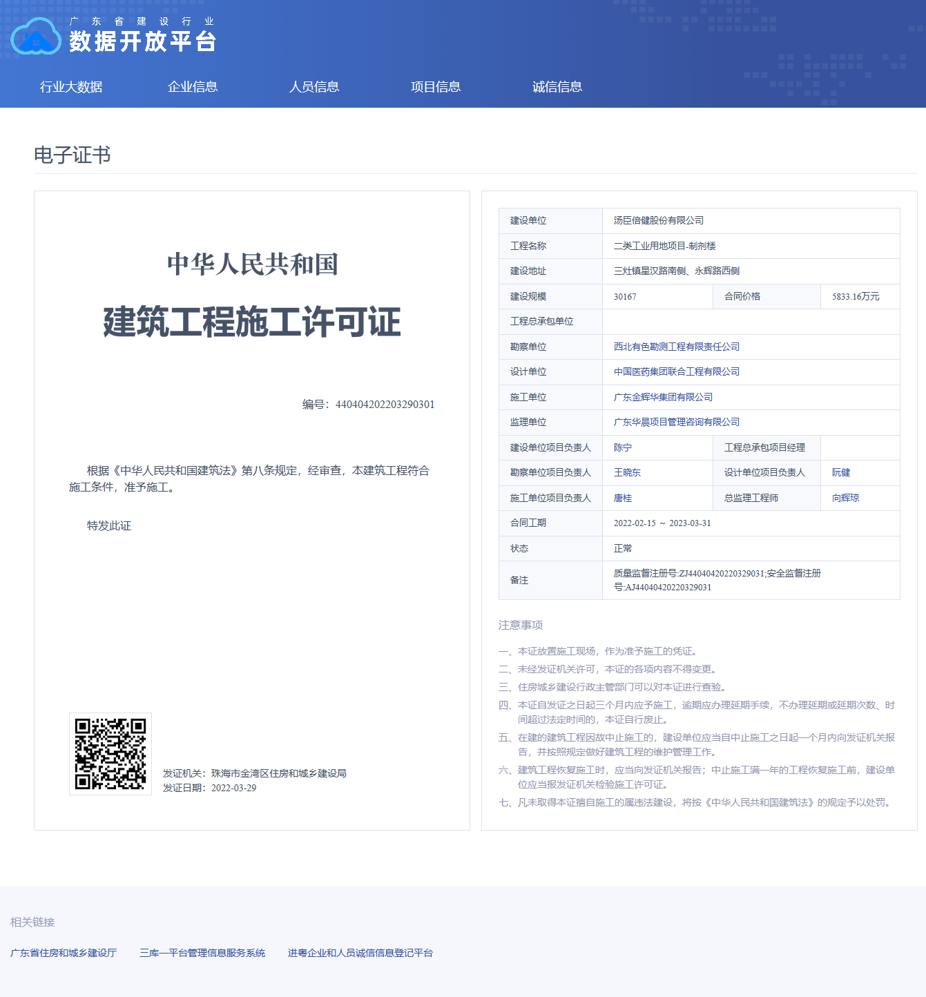 | 评价依据: | 施工许可证复印件及核发部门官网公示信息打印页 |