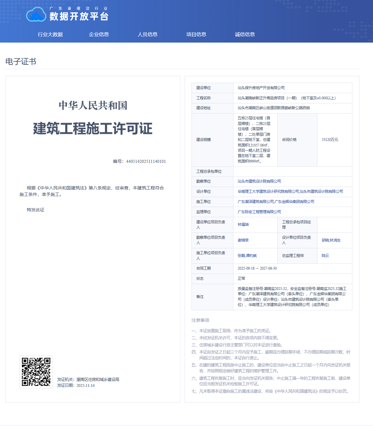 | 工程项目名称: | 汕头潮南峡新正升商品房项目(一期)(地下室及±0.000以上) |