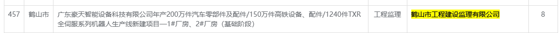 | 工程项目名称: | 广东豪天智能设备科技有限公司年产200万件汽车零部件及配件/150万件高铁设备、配件/1240件TXR全伺服系列机器人生产线新建项目—1#厂房、2#厂房(基础阶段) |