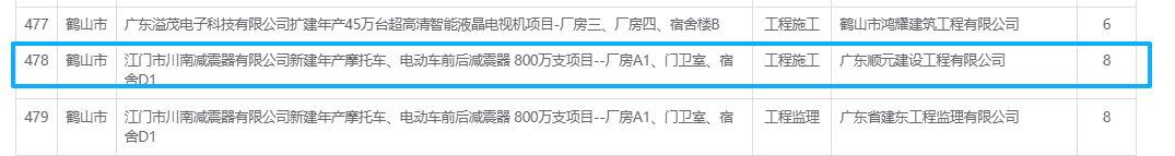 | 工程项目名称: | 江门市川南减震器有限公司新建年产摩托车、电动车前后减震器 800万 支项目--厂房A1、门卫室 |