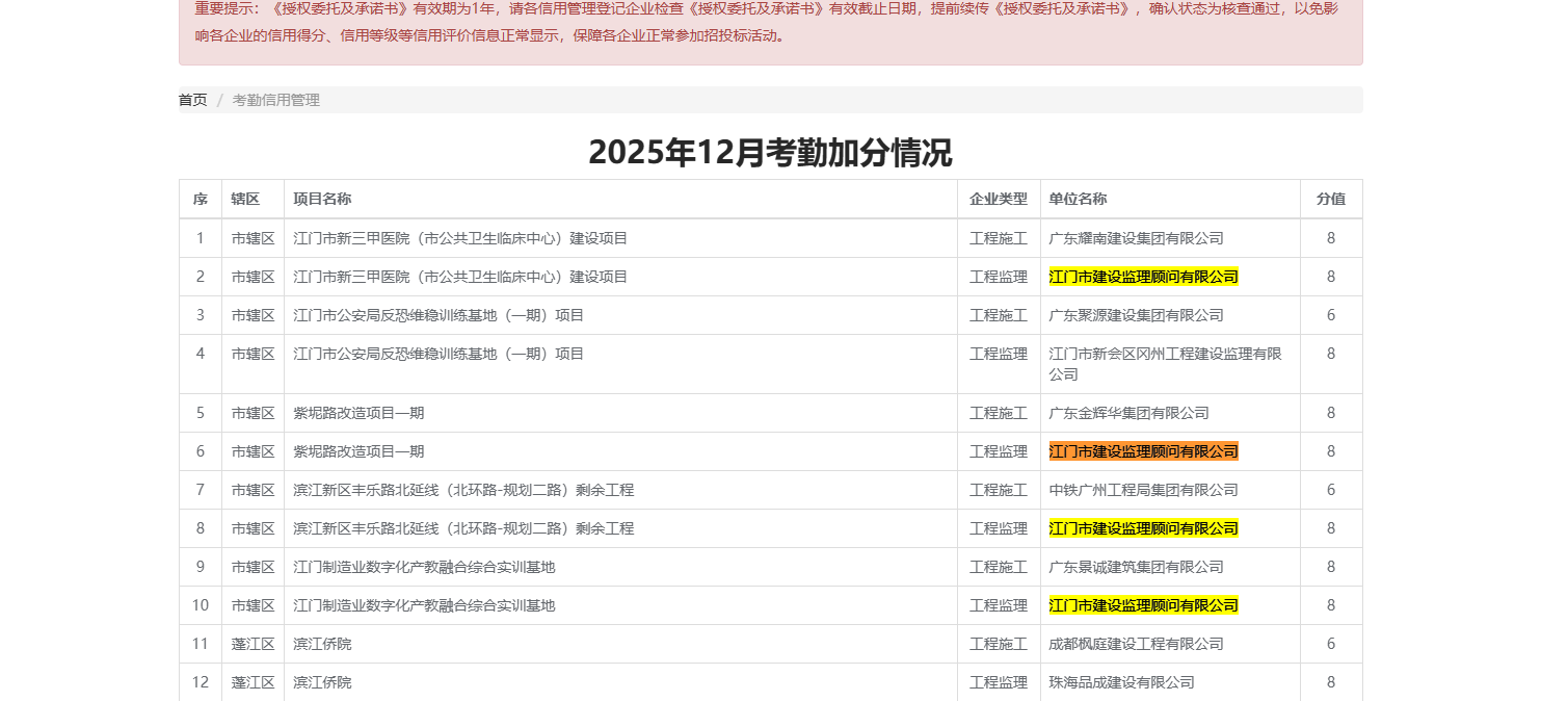 | 评价依据: | 建筑市场信用信息管理系统公布的名单 |