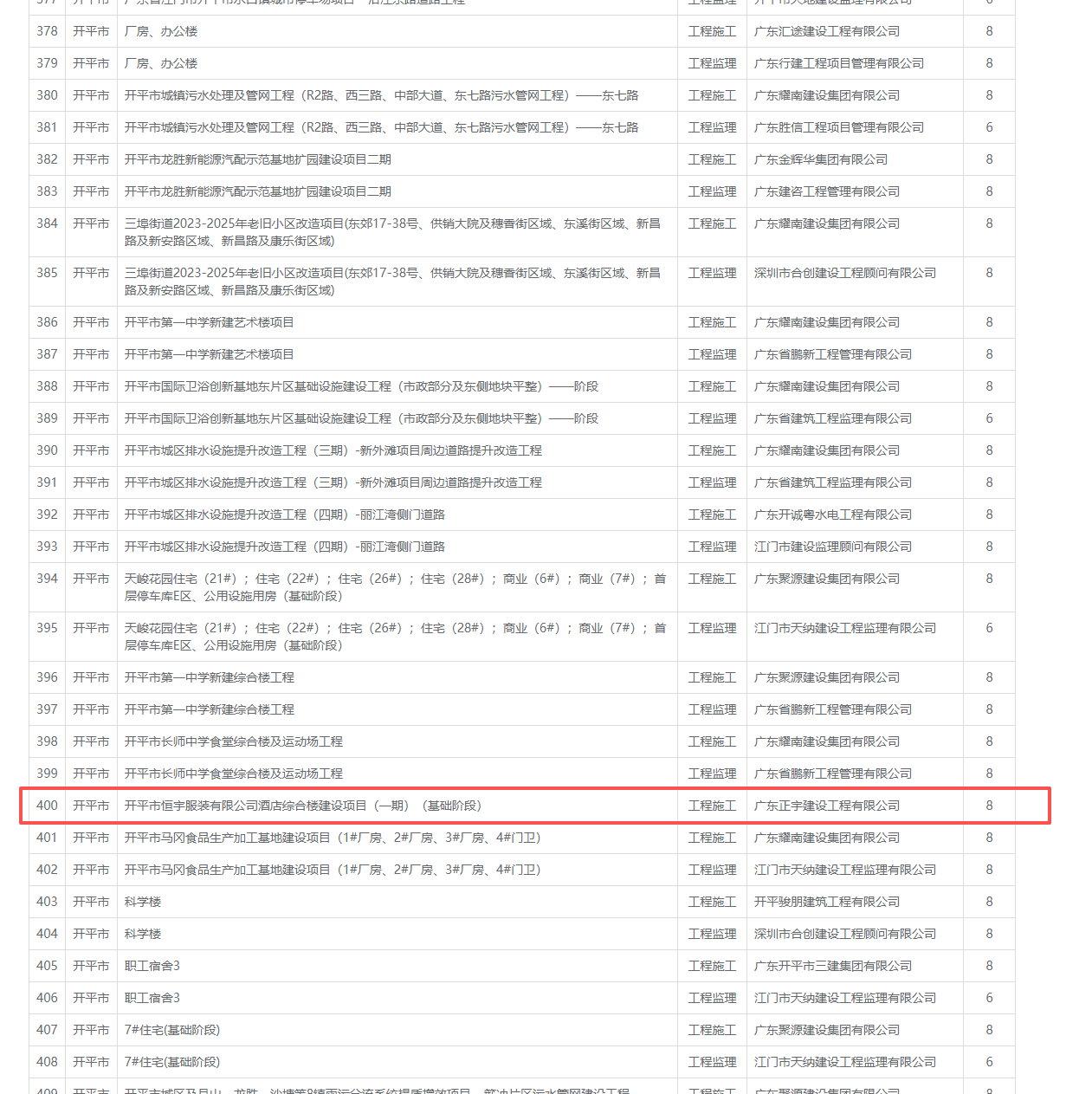 | 工程项目名称: | 开平市恒宇服装有限公司酒店综合楼建设项目(一期)(基础阶段) |