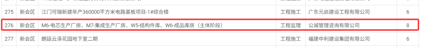 | 工程项目名称: | M6-电芯生产厂房、M7-集成生产厂房、W5-结构件库、W6-成品库房(主体阶段) |