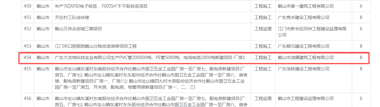 | 工程项目名称: | 广东大发地科技实业有限公司年生产PVC管200000吨、PE管5000吨、电线电缆1800吨新建项目-厂房1 |