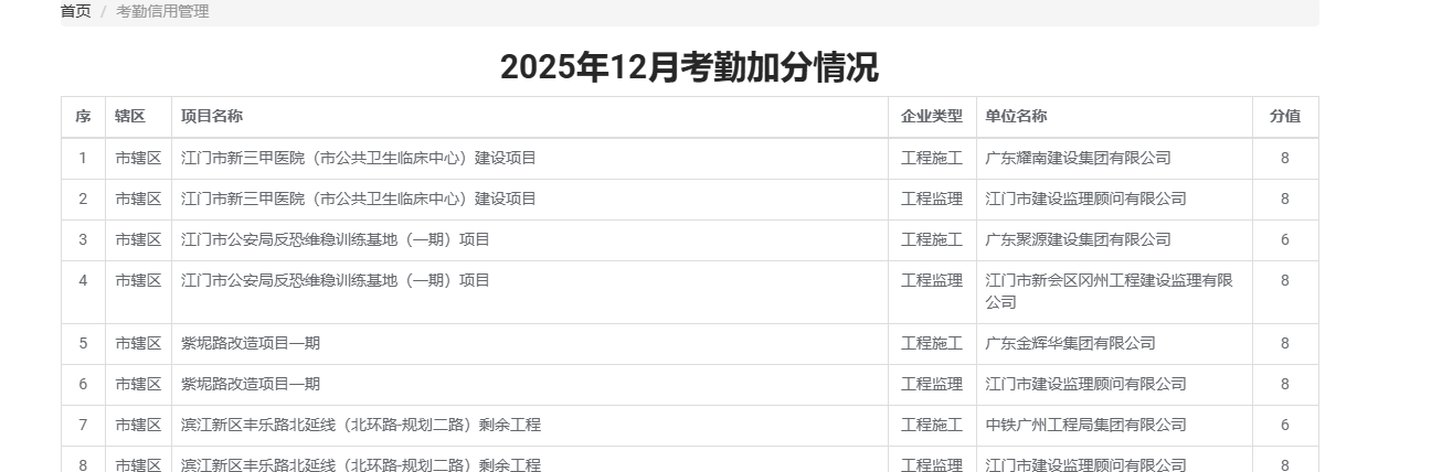 | 类别名称: | 90%≤人员月在岗率、人员月在岗时长,对纳入实名制管理的房屋市政项目,总监理工程师和专业监理工程师在一个月内均达到以下在岗率,企业可申请加分,上限150分。(最后计算结果四舍五入并精确到0.01)。人员月在岗率:当月在岗天数/当月应在岗天数,总监月在岗时长:当月在岗累计时长/当月工作日天数×2.5,专监月在岗时长:当月在岗累计时长/当月工作日天数×8。 |