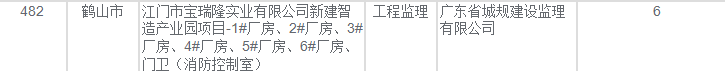 | 工程项目名称: | 江门市宝瑞隆实业有限公司新建智造产业园项目-1#厂房、2#厂房、3# 厂房、4#厂房、5#厂房、6#厂房、门卫(消防控制室) |