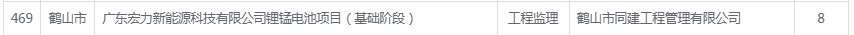 | 工程项目名称: | 广东宏力新能源科技有限公司锂锰电池项目(基础阶段) |