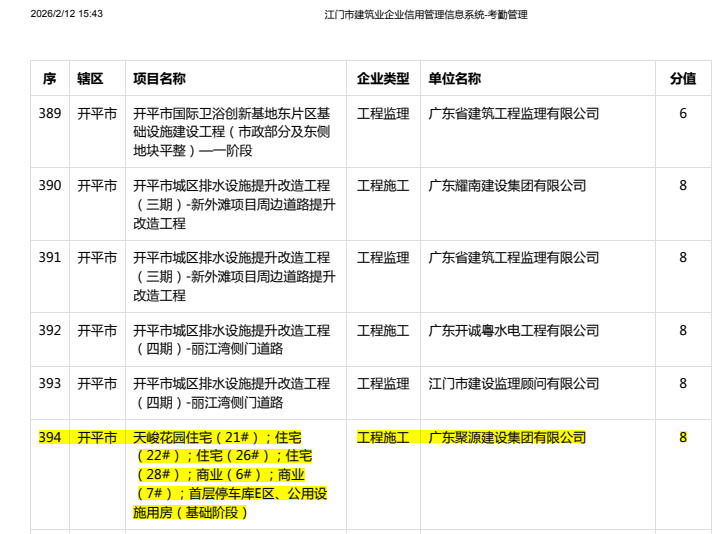 | 评价依据: | 建筑市场信用信息管理系统公布的名单 |