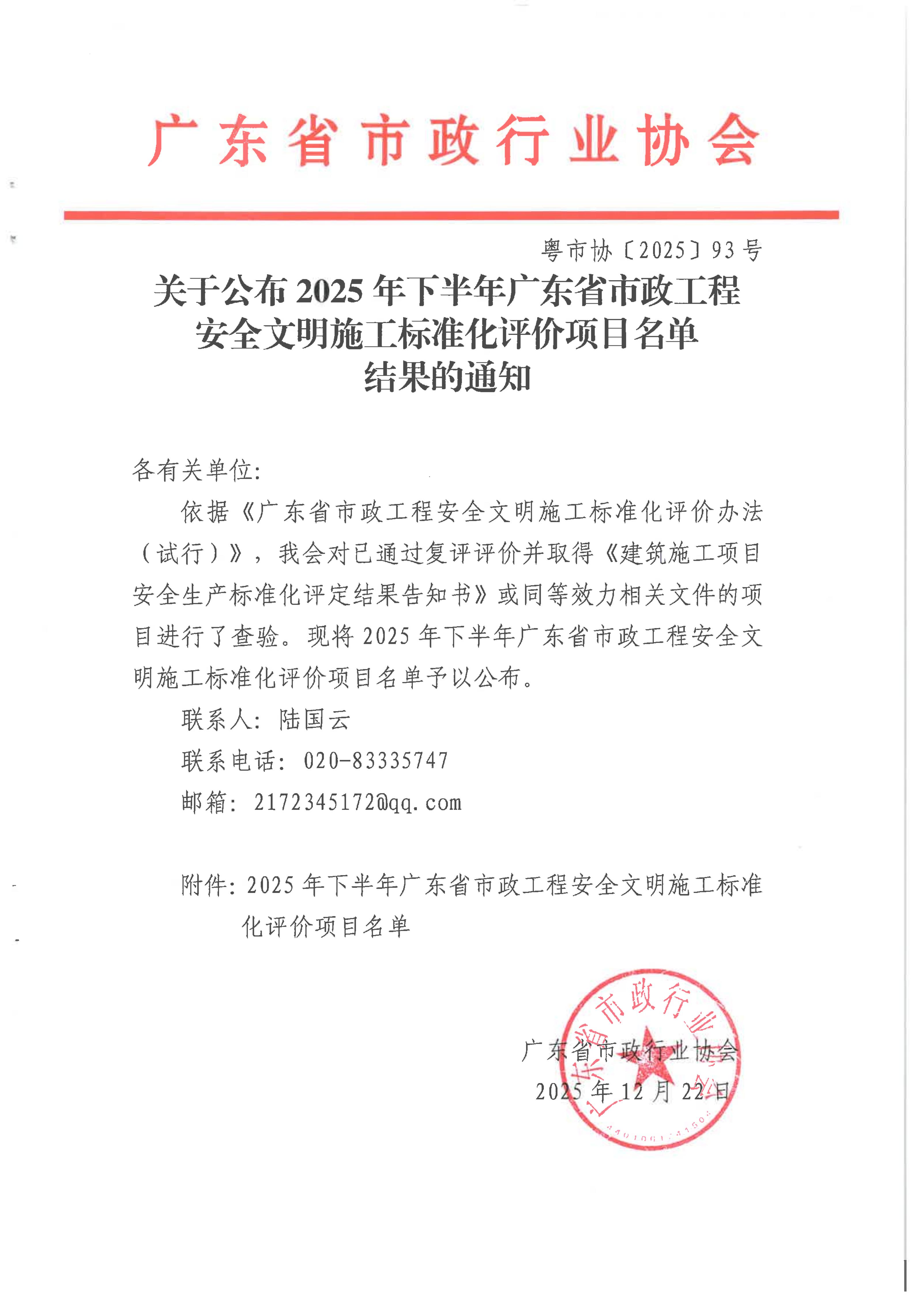 | 类别名称: | 省级房屋市政工程安全生产标准化工地评价(示范工地)、安全生产文明施工标准化评价(示范工地)(非牵头联合体成员) |