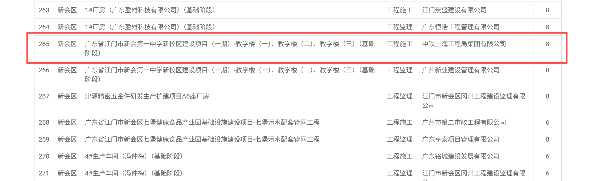 | 工程项目名称: | 广东省江门市新会第一中学新校区建设项目(一期)-教学楼(一)、 教学楼(二)、教学楼(三)(基础阶段) |