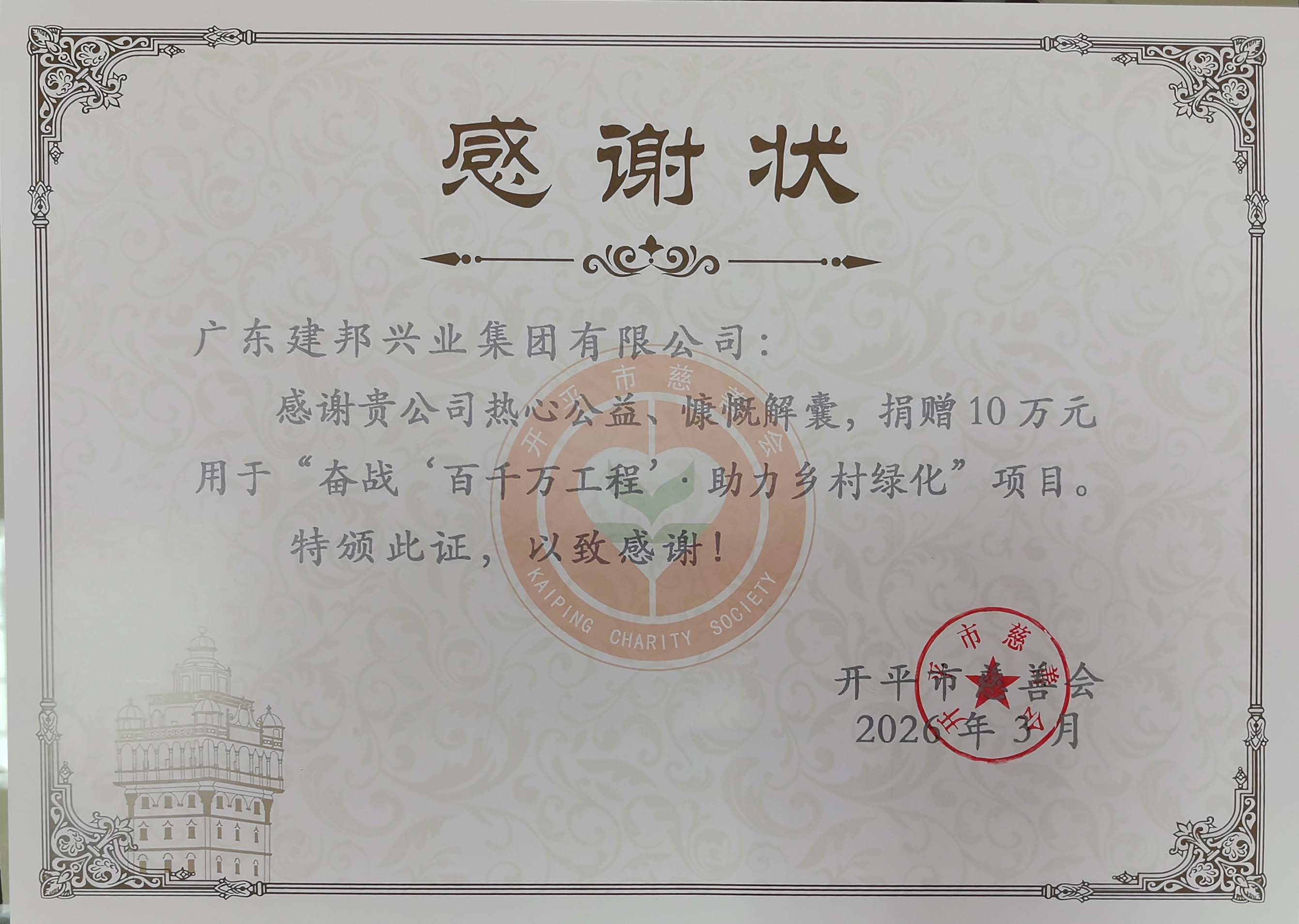 | 类别名称: | 参与或赞助(捐赠)市级政府、民政部门认可的慈善公益项目 |