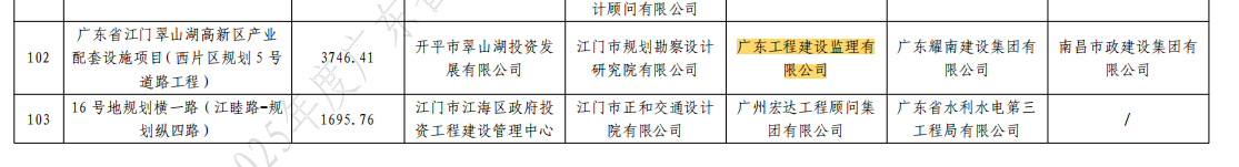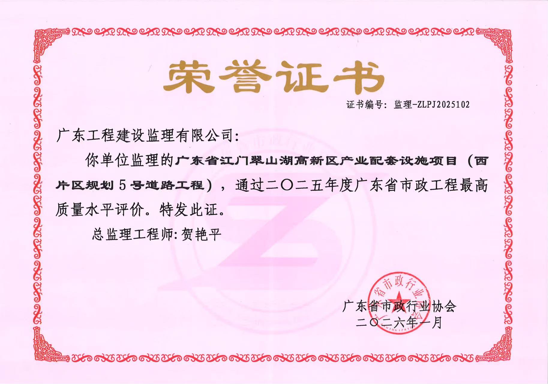 | 发文编号: | 2025年度广东省市政工程最高质量水平评价结果 |