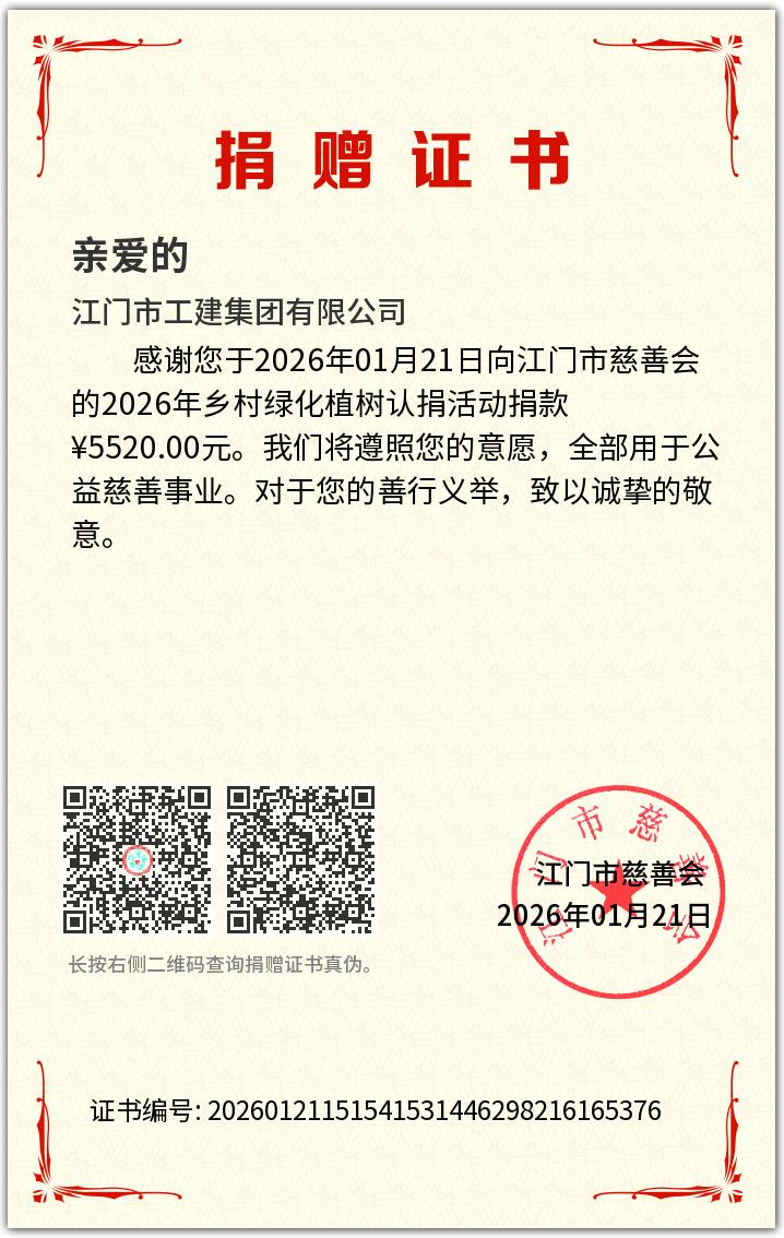 | 类别名称: | 参与或赞助(捐赠)市级政府、民政部门认可的慈善公益项目 |