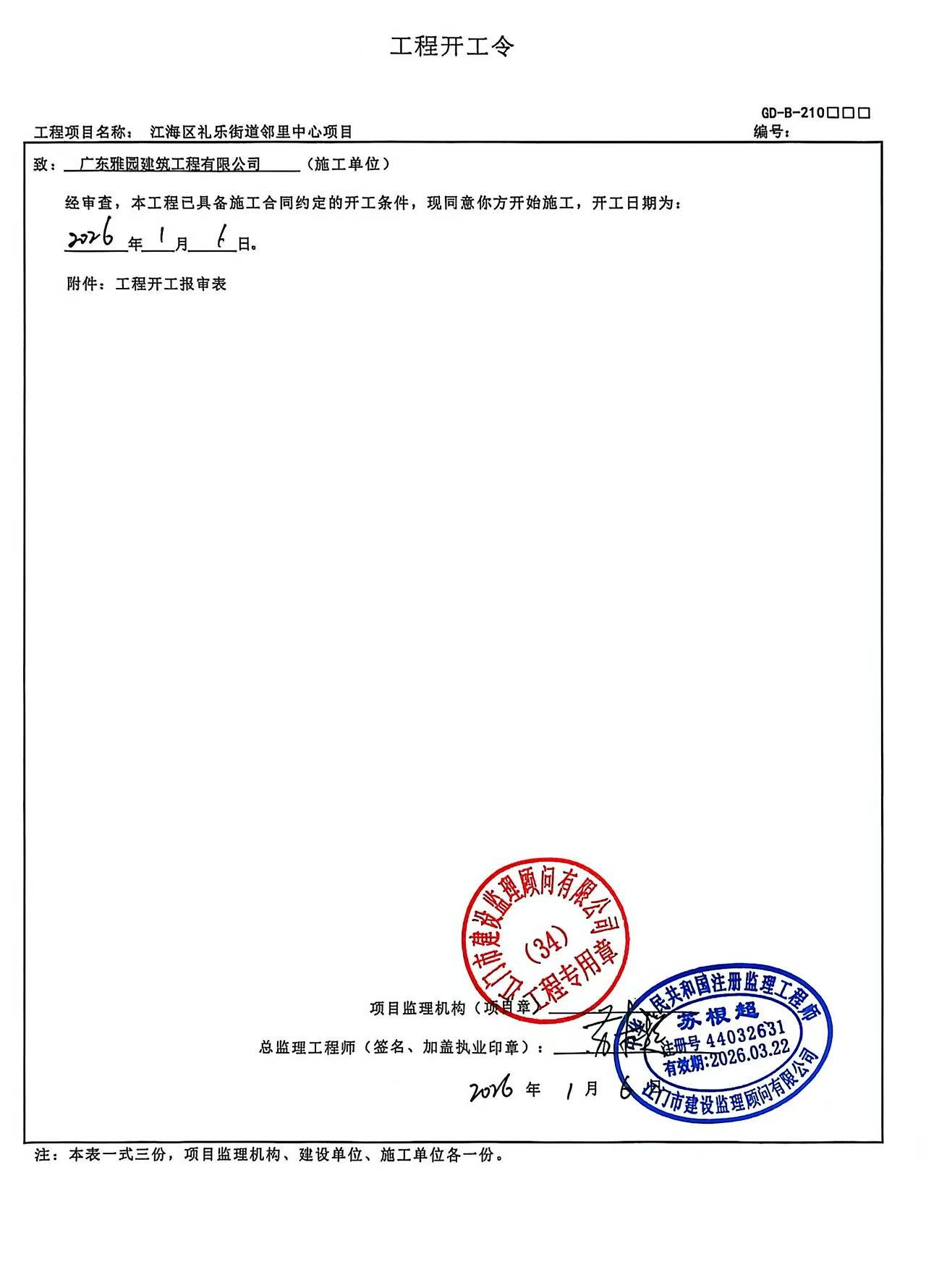 工程项目名称: 江海区礼乐街道邻里中心项目