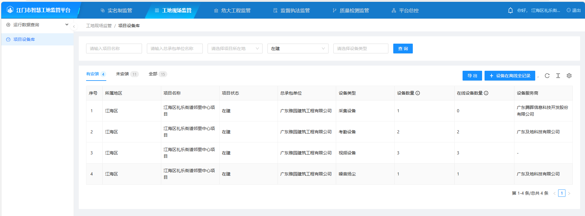 评价依据: 智慧工地监管平台数据截图